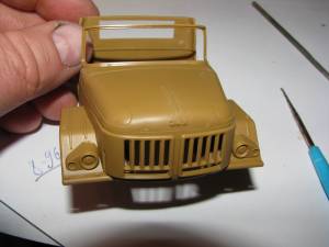 | итак сборка: Осмотр литников удручил: Разумеется сразу хочется посмотреть на кабину: Самое страшное капот! и подножки кабины. Рифление просто не поддается сравнению. А выштамповки на капоте: центральная напоминает декоративный элемент на ЗИС-110. А боковые, мягко говоря, невнятные.