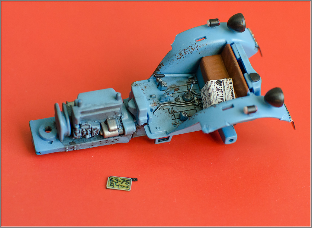 | Ржавчинка, симпотично получилась с грязючкой ( может маслица по больше на пол?) Сидушку переделать, фольгу тоже (ее однозначно и болтики поставить для крепления брызговиков.