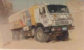 | Во первых, о происхождении модели, из «Советских» моделей, КАМАЗ 4310 самая поздняя. Все дело в том, что модели КАМАЗОВ в отличие от других моделей (легковушек, и грузовиков), производились не в г. Саратове, на ПО «Тантал», а на вспомогательном предприятии в г. Казани, и предназначение данной продукции, как это ни странно, было: «Рекламное сопровождение продукции Камского автомобильного завода». Отсюда технология, и копийность были весьма своеобразными. Например, та деталь, которая изображает подъемную панель кабины, (решетку радиатора), хотя радиатор через нее не обдувается только частично, была отлита вместе с рассеивателями фар, из одной непрозрачной пластмассы белого цвета. Данная деталь является, в том числе составляющей частью шарнира кабины. В те времена главной надобностью, по видимому, было обеспечить, надежность данного узла, для многочисленных открываний и поэтому данная деталь выполнена массивной и копийности сильно не придает. Так же массивность, и скорее, условность, деталей рамы, трансмиссии и т.д. так же не способствовали этой функции (в смысле копийности). Все довершали «условный» салон, выхлоп, полностью пластмассовые колеса, с протектором «лесенка». Все изменилось в 1988 году, когда наши КАМАЗЫ стали узнавать как победителей ралли, сначала польского в г. Вроцлав, потом «пошли» «Париж-Даккары», и предприятие (в последствии стало называться «Элекон»), начало производить новую разработанную модель – КАМАЗ 4310, Она выпускалась как в версии «хаки», так и с кабиной со «спальником» (43102) в версии «Раллийный») Благо, тогда в Ралли выступали машины не слишком отличавшиеся от серийных 4310 С (во всяком случае, внешне, (кроме колес ящиков ЗИП, баков и окраски)).