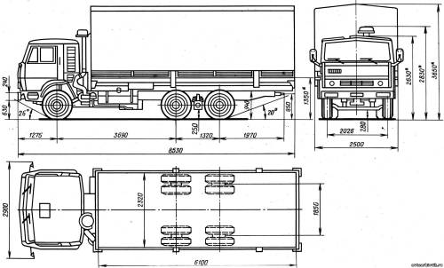 | 2. 10-ти тонный 53212, (главное внешнее отличие кабина «со спальником», длинее база, платформа длиннее)