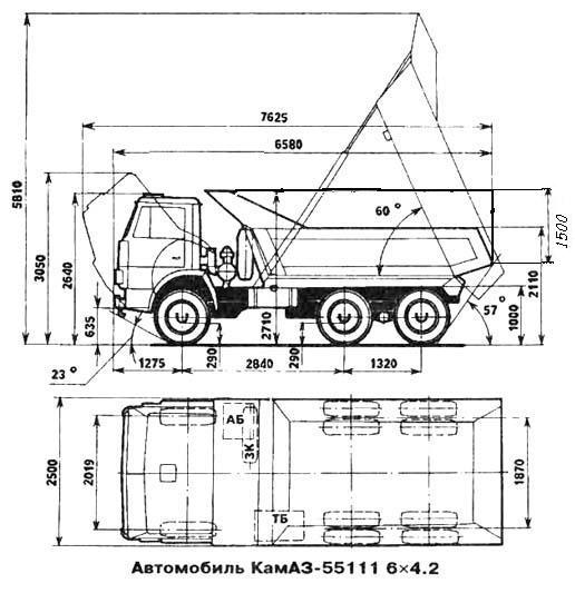 | 4. Самосвал 5510, (кабина без «спальника», характерные воздухозаборникики воздушного фильтра, короткая рама, короткая база (аналогичная 5410), узнаваемый кузов).