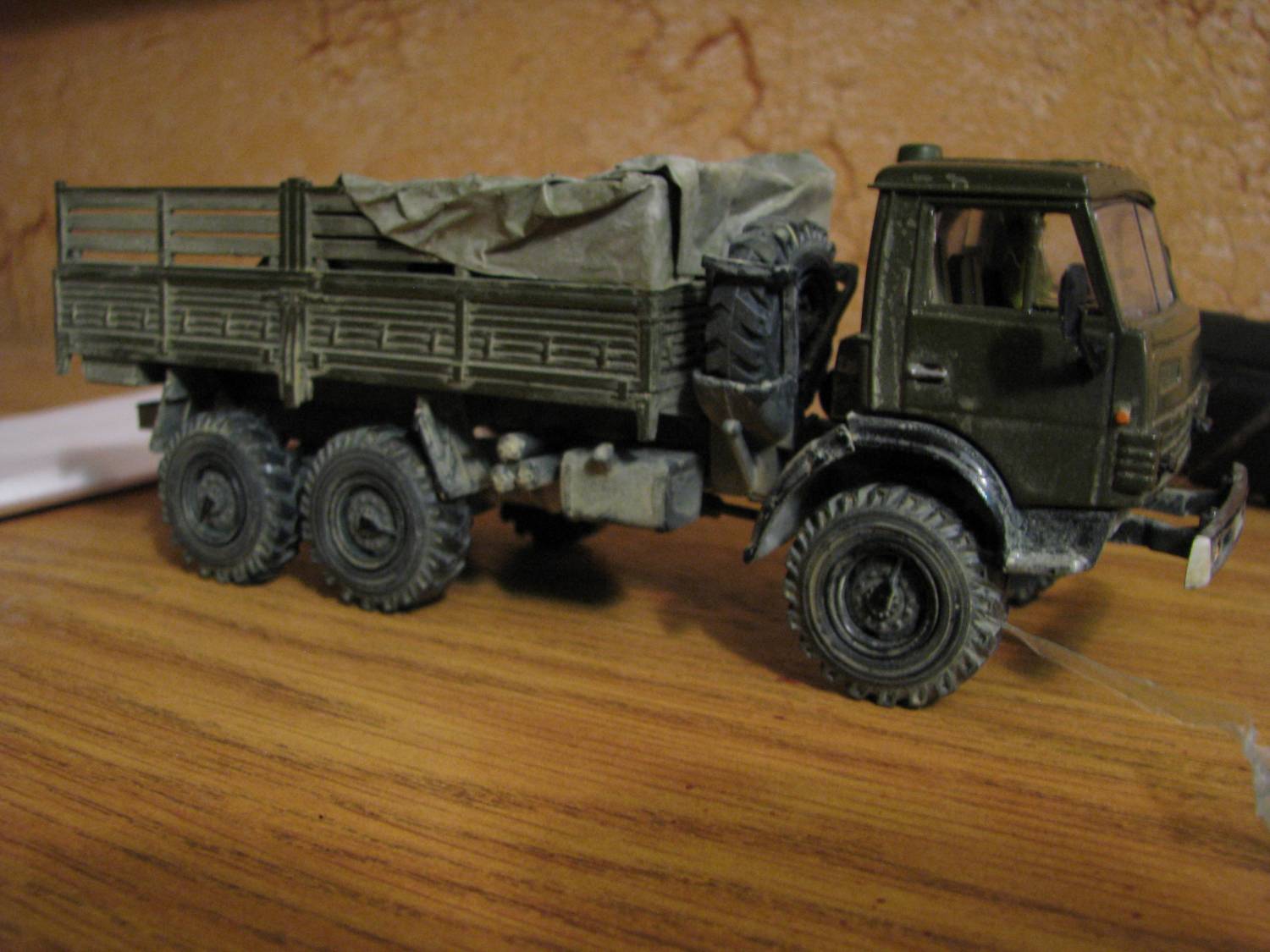 Один из персонажей моей работы «Перевал», Камаз 4310, принадлежащий одной из бригад так, называемых «Трубачей». Указанные бригады, обслуживали топливные трубопроводы, идущие через, перевал Саланг. Историческую справку опущу, кому будет интересно, тот найдет в интернете. Но для образа это и удобно, и интересно, тем - что таких «Камазов» было достаточно много, и главное тем, что одни из самых первых качественных фото о войне в Афганистане, в частности о Саланге, были сняты корреспондентами ИТАР ТАСС, 1987 году именно с выездом на ремонт повреждений трубопровода. И первые фото «реальной войны» появившейся в открытой печати: Журналы «Советский Союз», «Огонек», «Подвиг» и т.д.. И первое впечатление моего юношества, не могло быть забыто. Тем более, что модель КАМАЗа 4310 у меня была, причем без тента. Ну и…